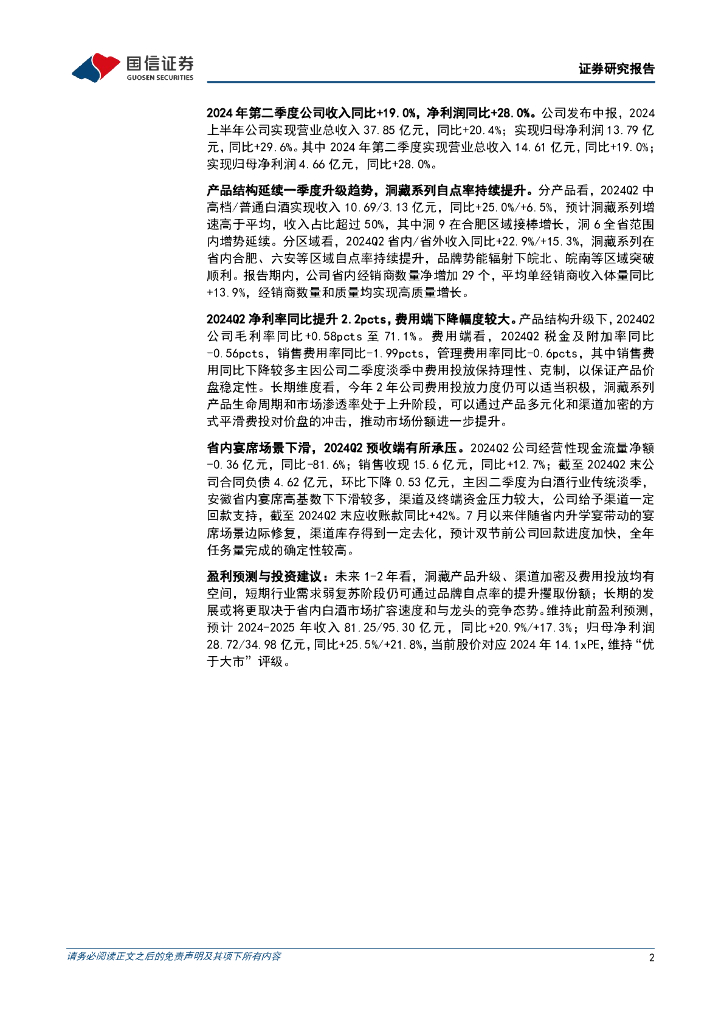 国信证券:迎驾贡酒(603198)-第二季度净利润同比增长28%,洞9延续较快增长.pdf