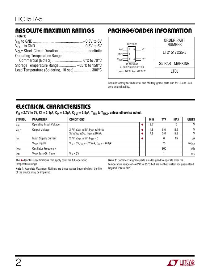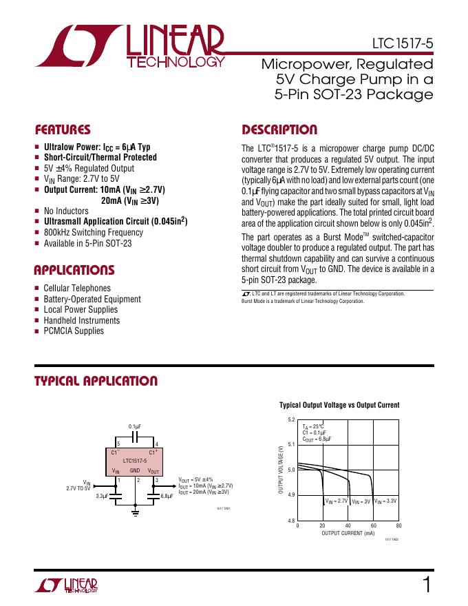 LINEAR TECHNOLOGY - LT1173 Micropower DC/DC Converter Adjustable and Fixed 5V, 12V 说明书