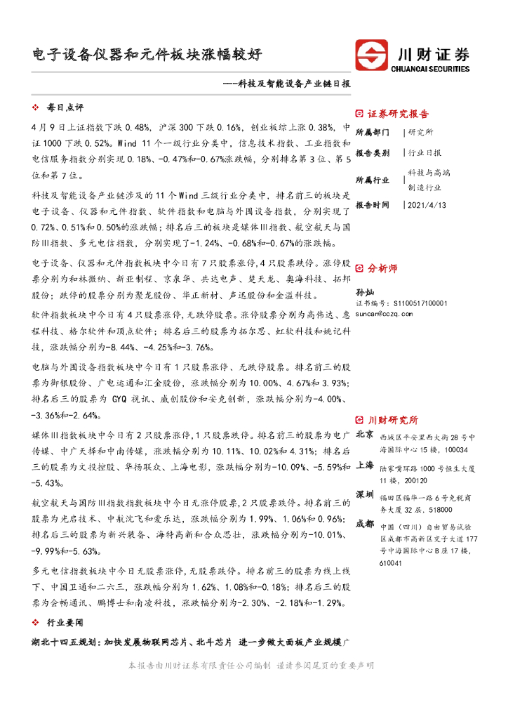 川财证券:科技及智能设备产业链日报:电子设备仪器和元件板块涨幅较好.pdf