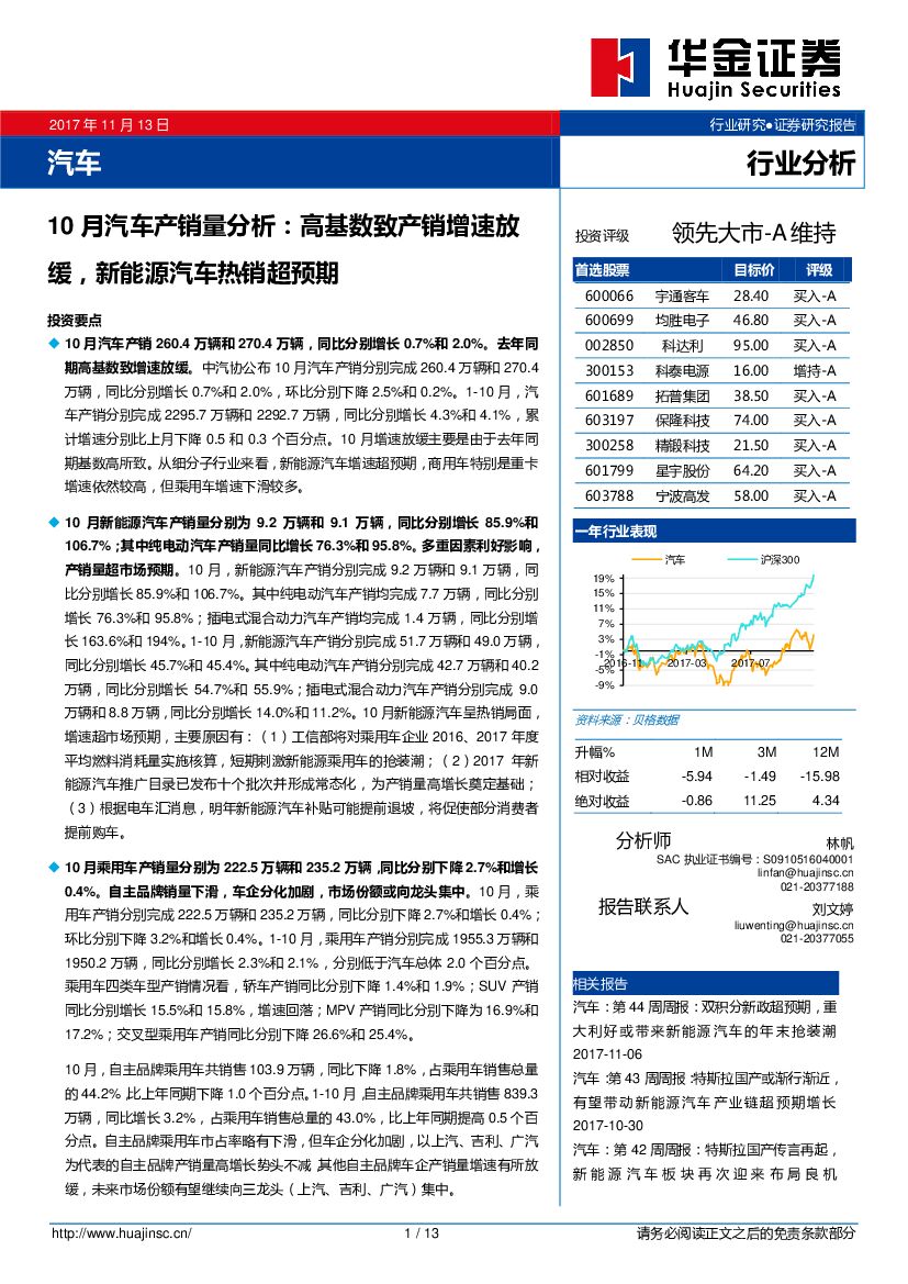 华金证券:10月汽车产销量分析:高基数致产销增速放缓,新能源汽车热销超预期.pdf