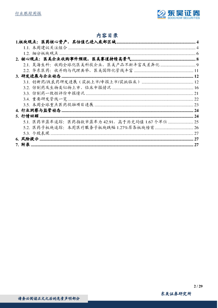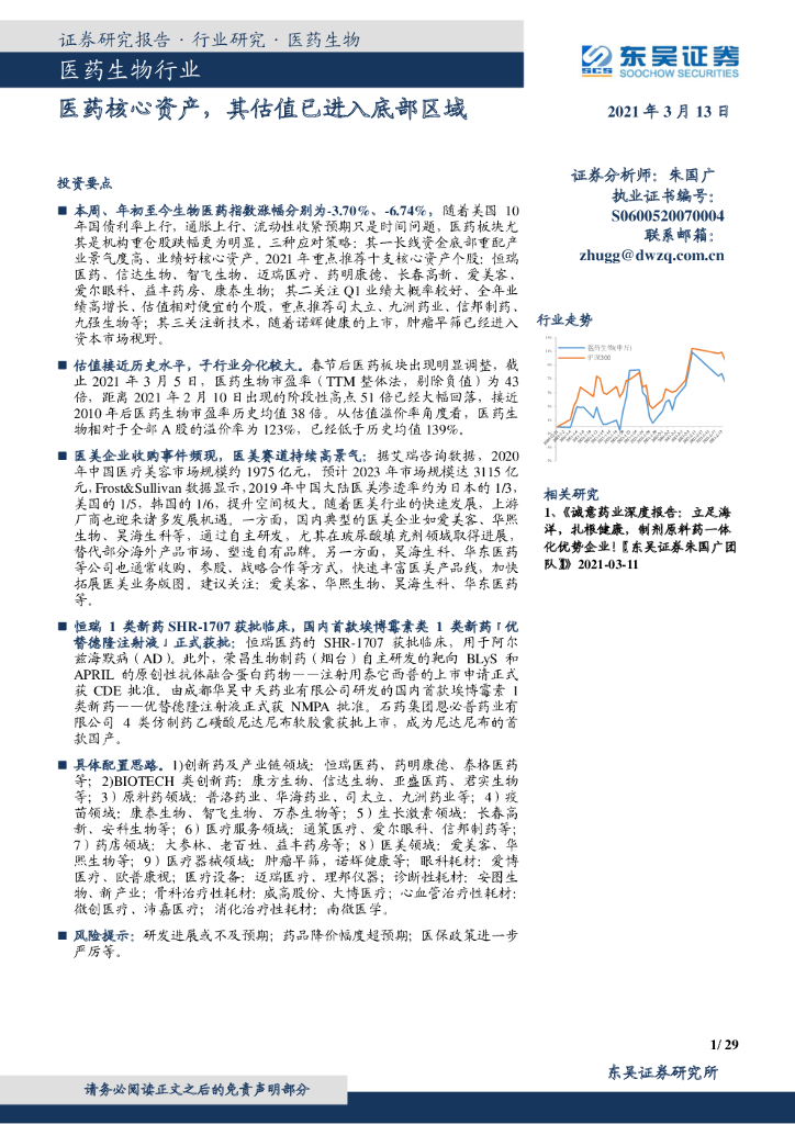 东吴证券:医药生物行业:医药核心资产,其估值已进入底部区域.pdf