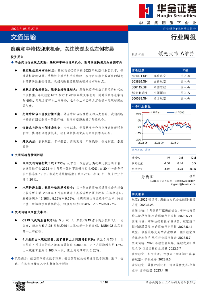 华金证券:交通运输行业周报:廉航和中特估迎来机会,关注快递龙头左侧布局.pdf