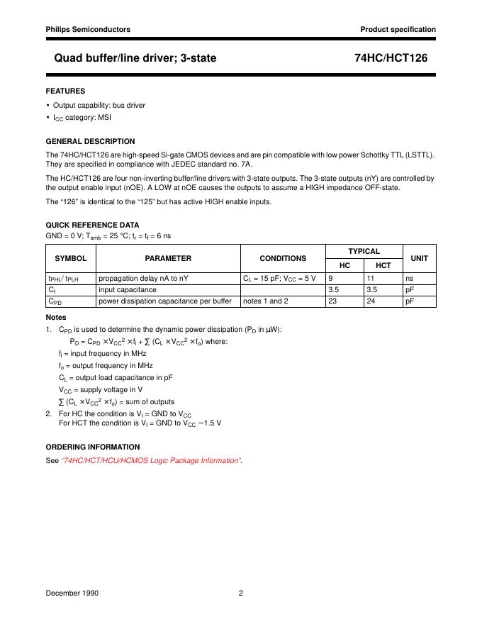 PHILIPS 74HC/HCT126 Quad buffer/line driver; 3-state 数据手册.pdf