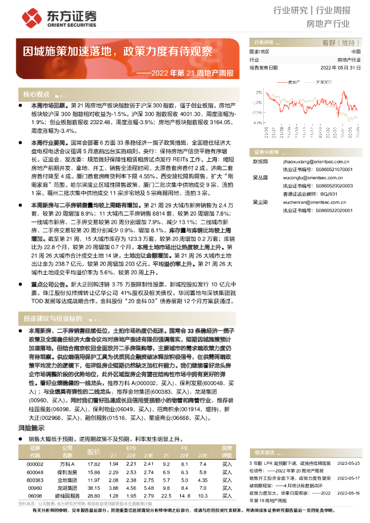 东方证券:房地产行业2022年第21周地产周报:因城施策加速落地,政策力度有待观察.pdf
