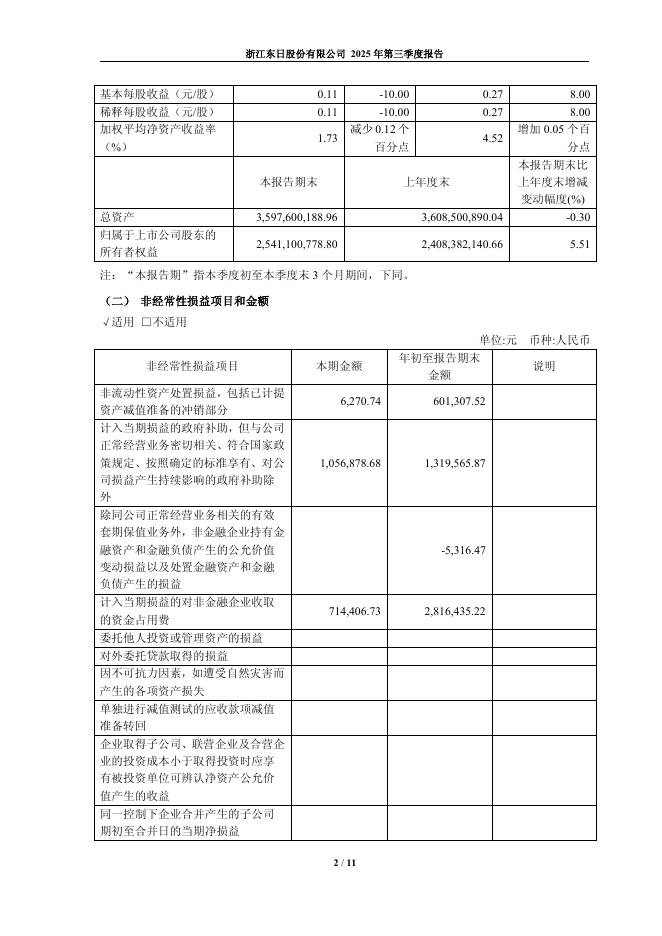 600113-浙江东日:浙江东日股份有限公司2025年第三季度报告.pdf