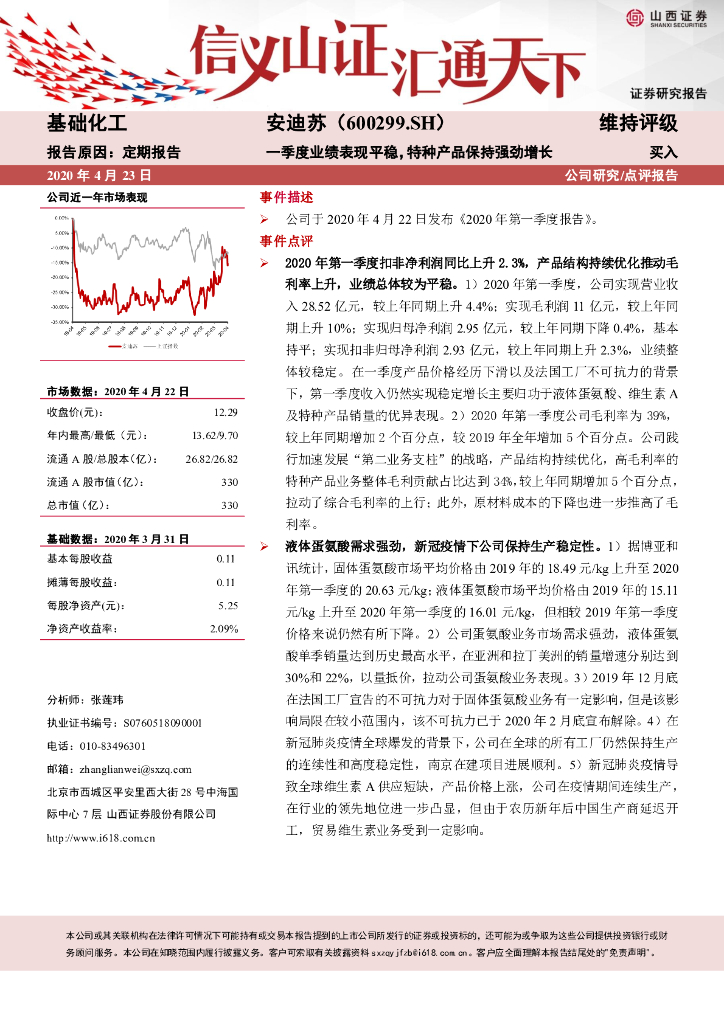 山西证券:安迪苏(600299)-一季度业绩表现平稳,特种产品保持强劲增长.pdf