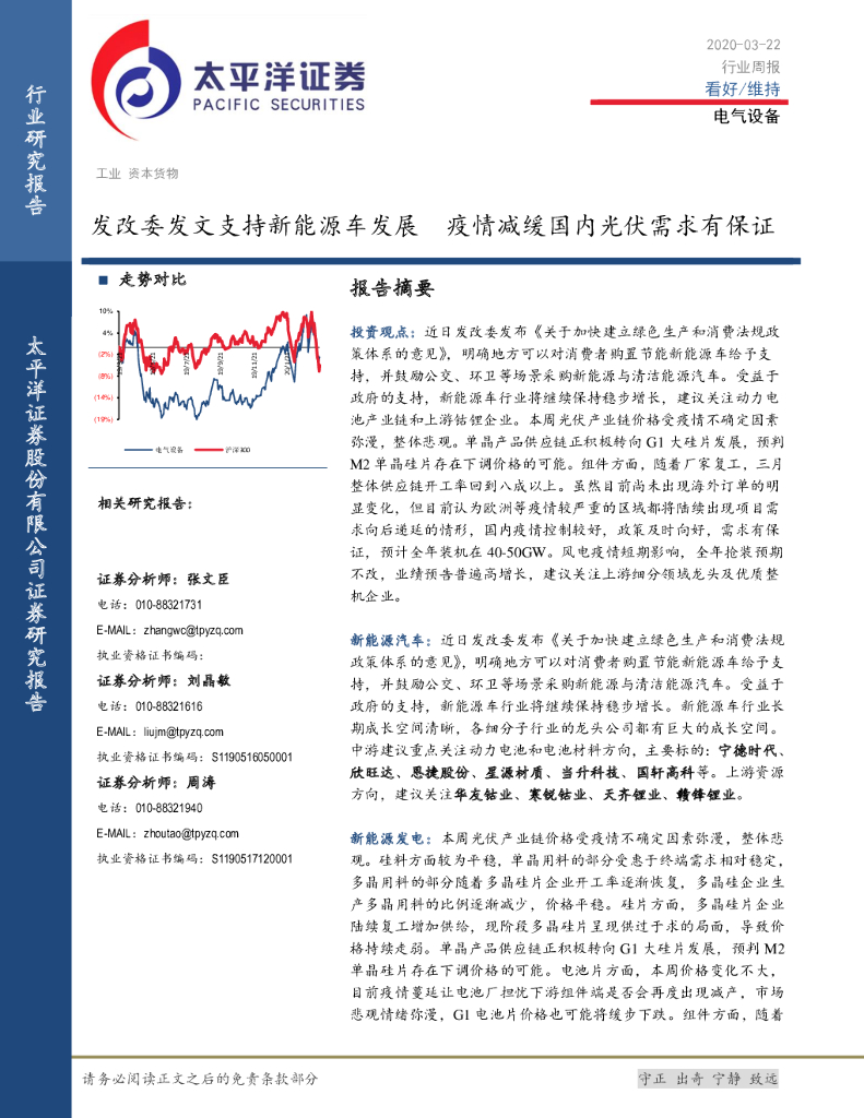太平洋证券:电气设备行业周报:发改委发文支持新能源车发展 疫情减缓国内光伏需求有保证.pdf