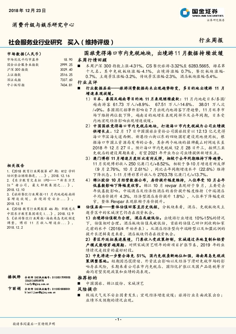 国金证券:社会服务业行业研究周报:国旅竞得海口市内免税地块,出境游11月数据持续放缓.pdf