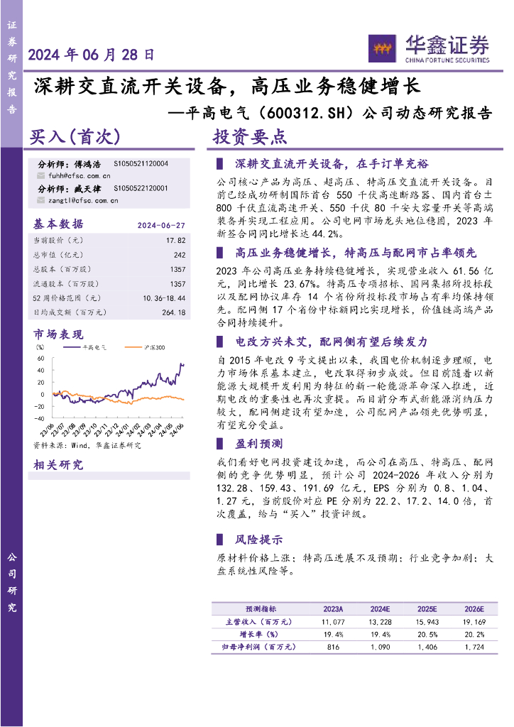 华鑫证券:平高电气(600312)-公司动态研究报告:深耕交直流开关设备,高压业务稳健增长.pdf