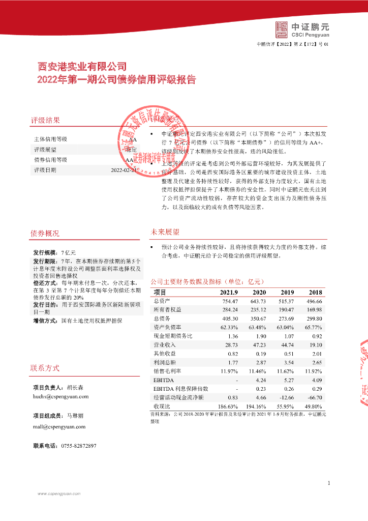 鹏元:西安港实业有限公司2022年第一期公司债券信用评级报告.pdf