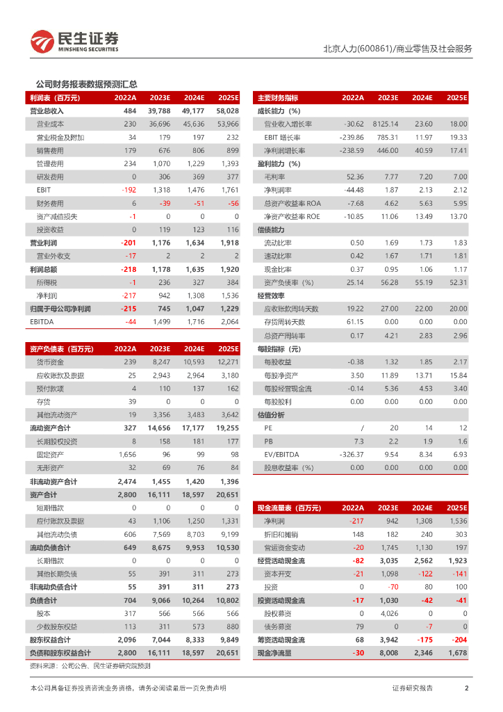 民生证券:北京人力(600861)-2023年中报业绩预告点评:上半年业绩预告表现亮眼,强化全年信心.pdf