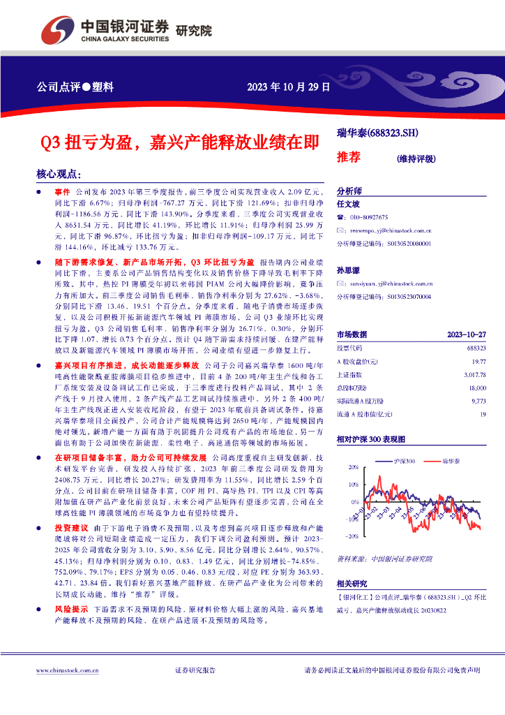 中国银河:瑞华泰(688323)-Q3扭亏为盈,嘉兴产能释放业绩在即.pdf