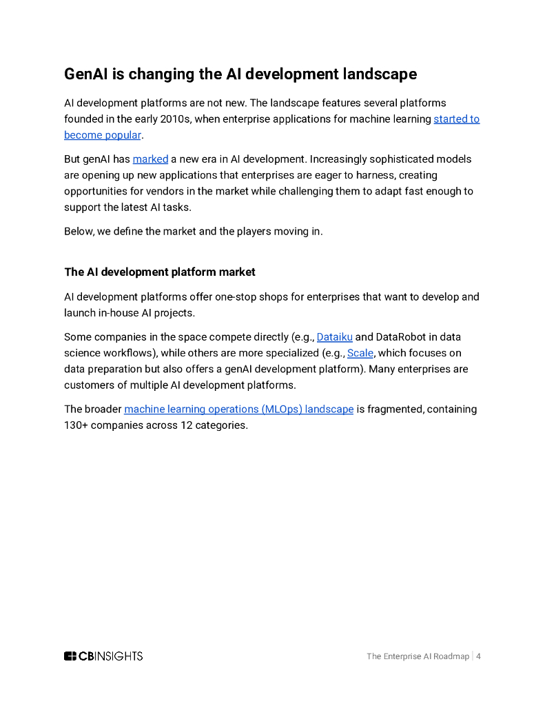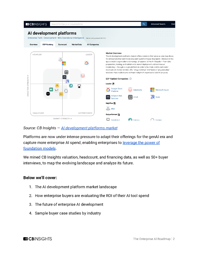 CB Insights:2024企业人工智能路线图:AI开发平台的演变及对ROI评估与用例实践的深远影响报告(英文版).pdf
