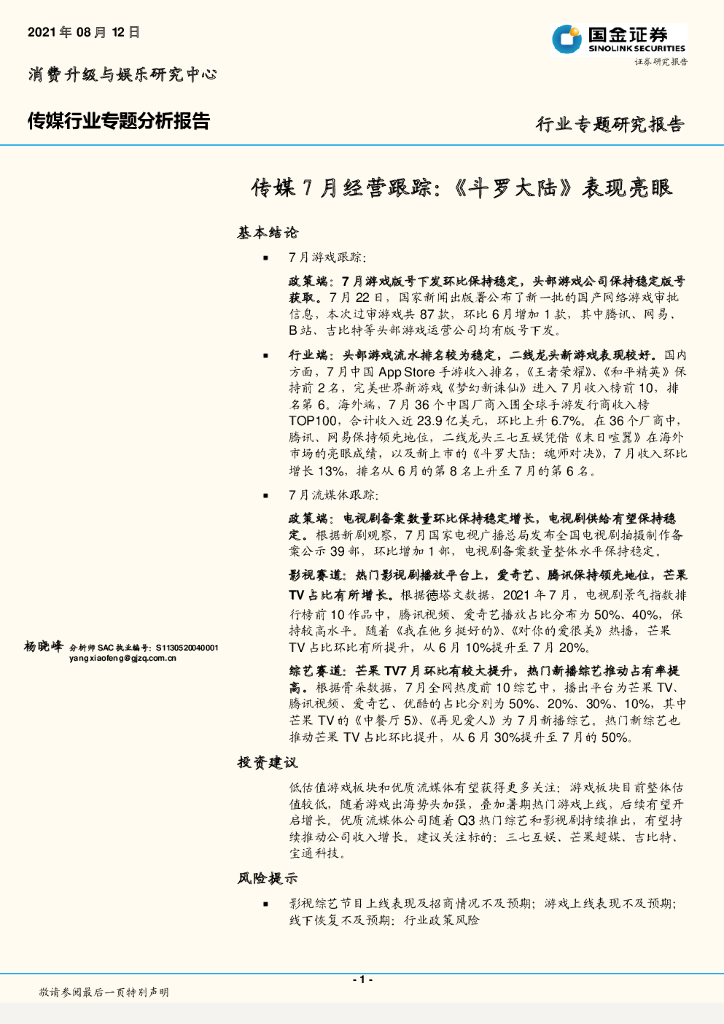 国金证券:传媒7月经营跟踪:《斗罗大陆》表现亮眼.pdf