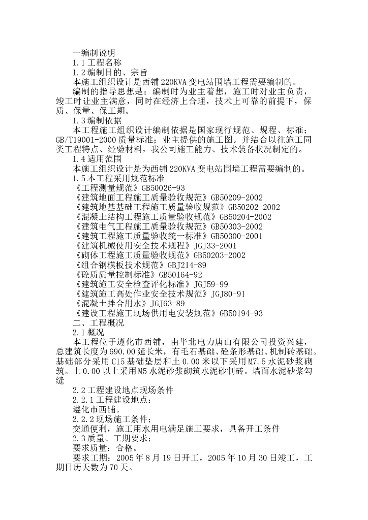 某KVA变电站围墙工程施工组织设计方案.doc