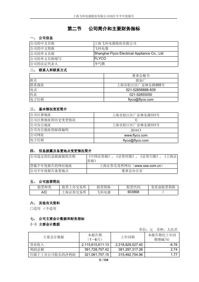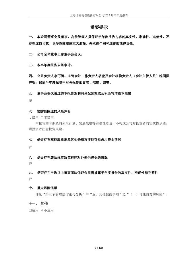 603868-飞科电器:上海飞科电器股份有限公司2025年半年度报告.pdf