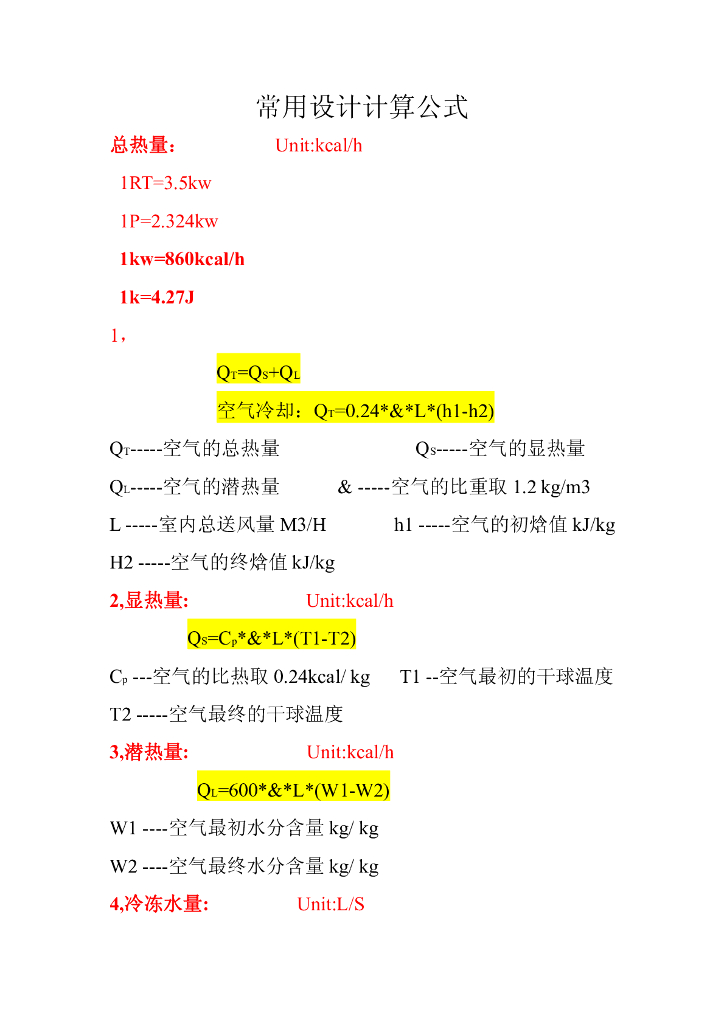 暖通最常用的设计计算公式.pdf