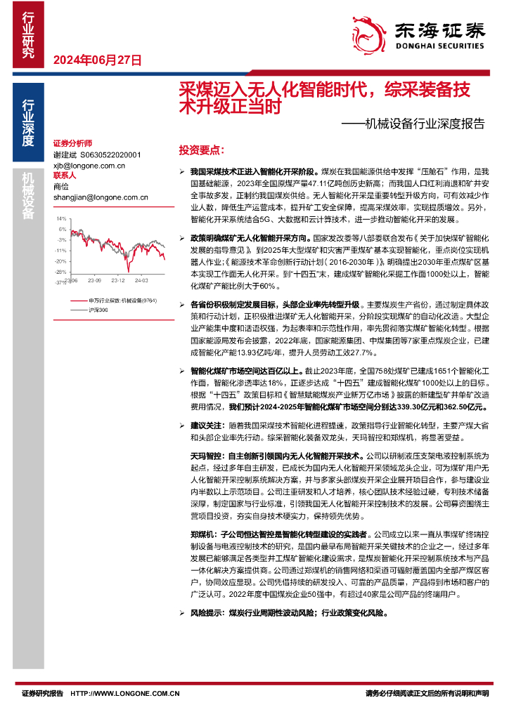 东海证券:机械设备行业深度报告:采煤迈入无人化智能时代,综采装备技术升级正当时.pdf