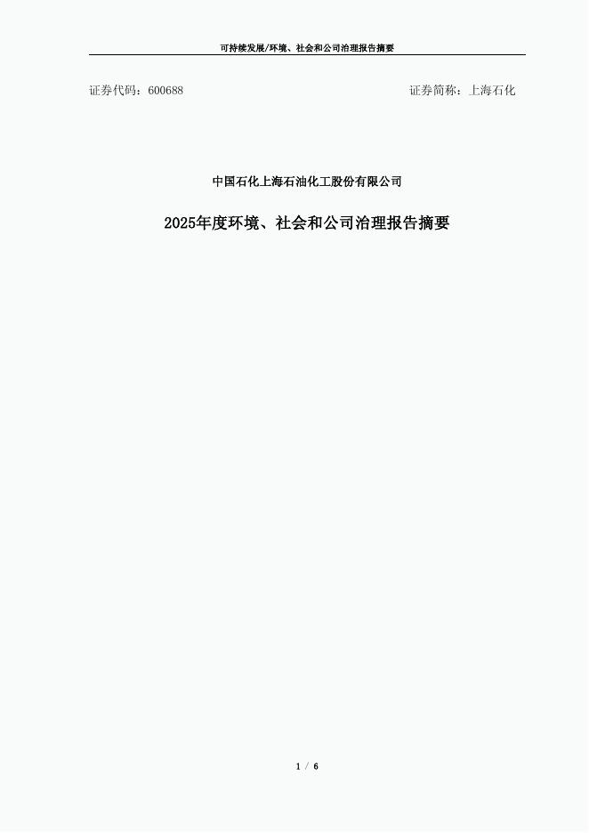 600688-上海石化:上海石化2025年度环境、社会和公司治理报告摘要.pdf