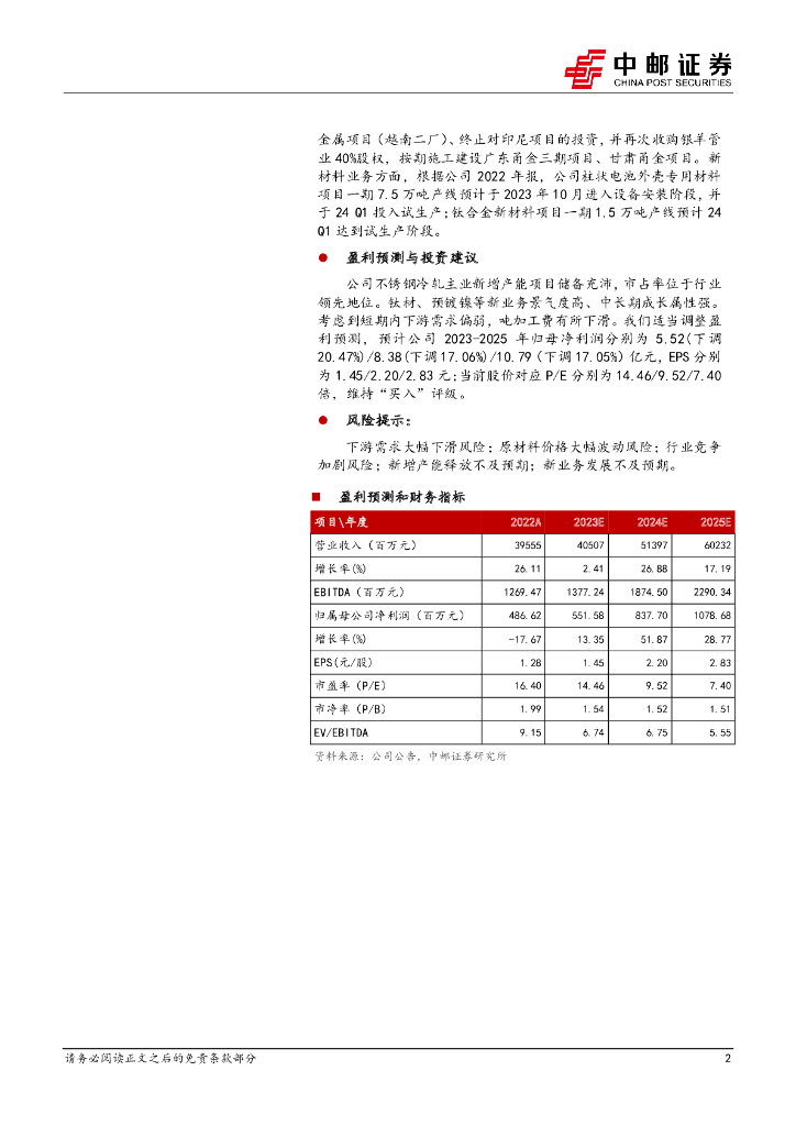 中邮证券:甬金股份(603995)-23H1盈利承压,新材料业务稳步推进.pdf