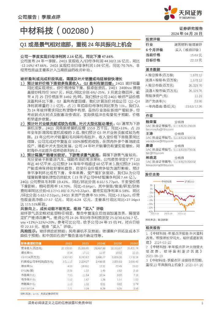天风证券:中材科技(002080)-Q1或是景气相对底部,重视24年共振向上机会.pdf
