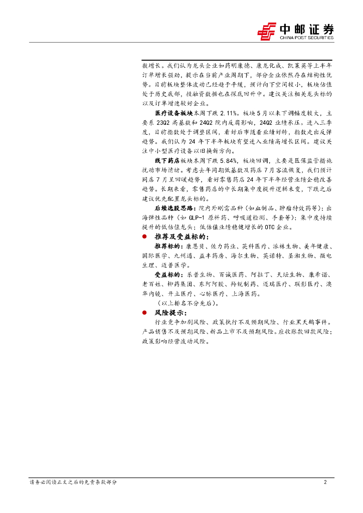 中邮证券:医药生物行业报告:坚持高确定性成长板块加底部业绩反转个股配置思路.pdf