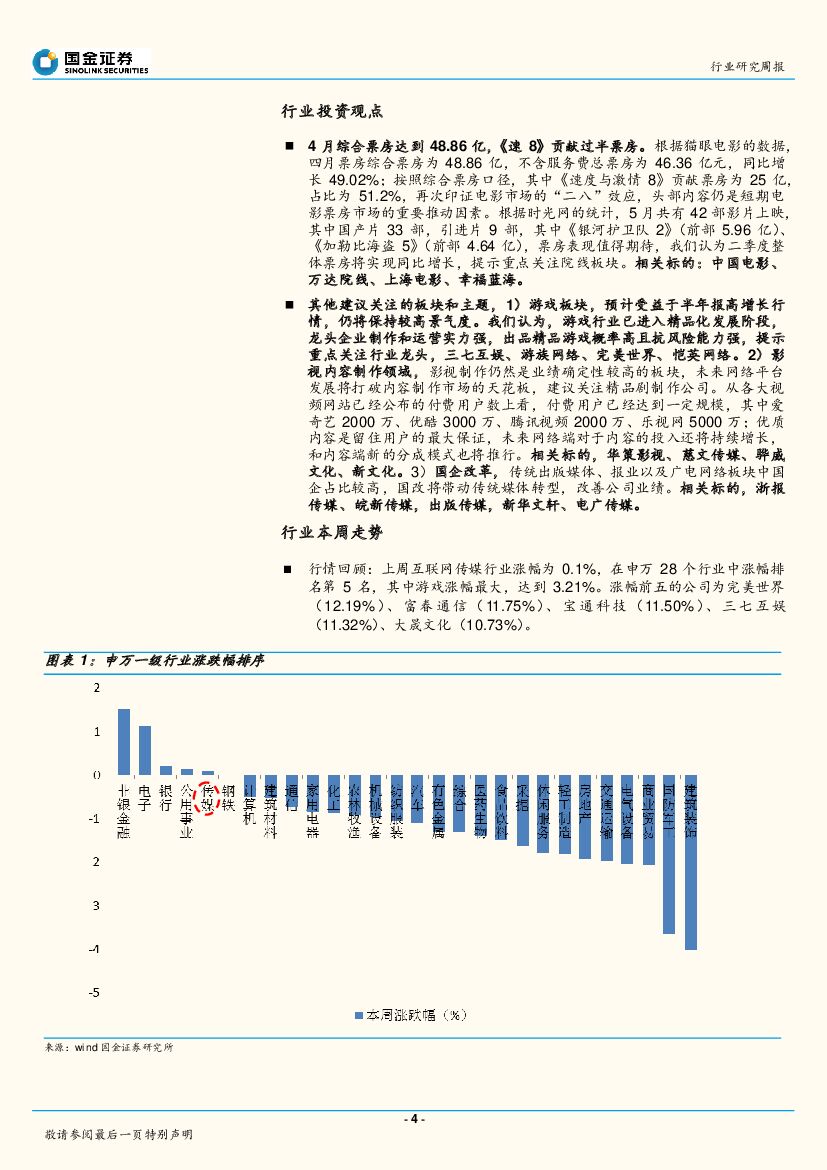国金证券:传媒互联网研究周报:四月票房强劲增长49%,整体票房近五十亿.pdf