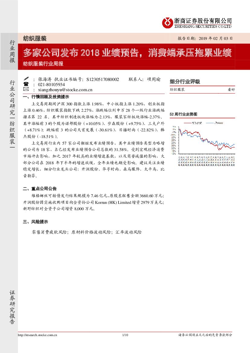 浙商证券:纺织服装行业周报:多家公司发布2018业绩预告,消费端承压拖累业绩.pdf