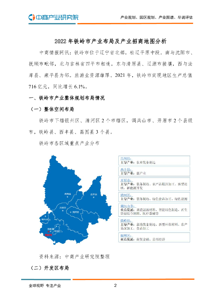 中商产业研究院:2022年铁岭市产业布局及产业招商地图分析.pdf