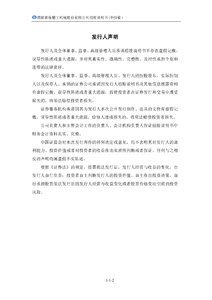 绵阳富临精工机械股份有限公司深交所创业板IPO上市招股说明书.pdf