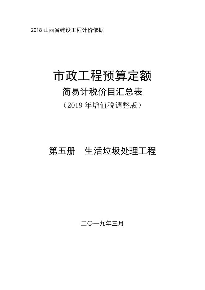 山西省市政工程预算定额 简易计税价目汇总表(2019年增值税调整版)第五册 生活垃圾处理工程.pdf
