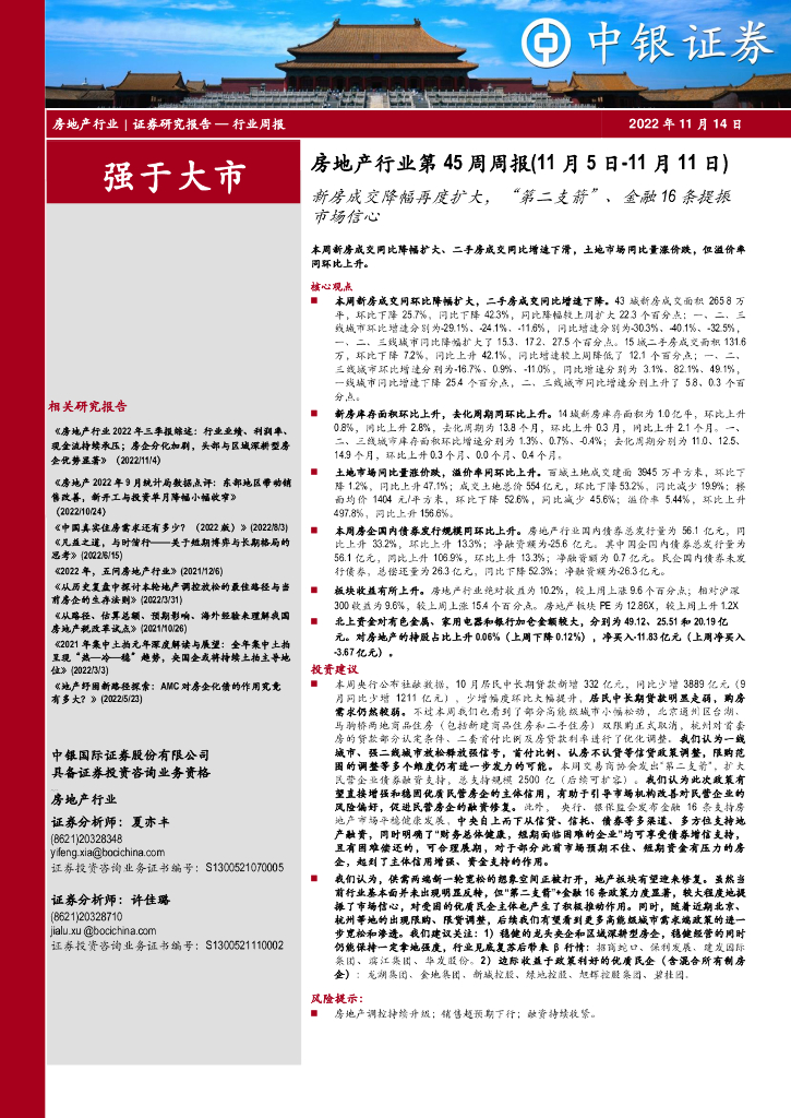 中银证券:房地产行业第45周周报:新房成交降幅再度扩大,“第二支箭” 、金融16条提振市场信心.pdf