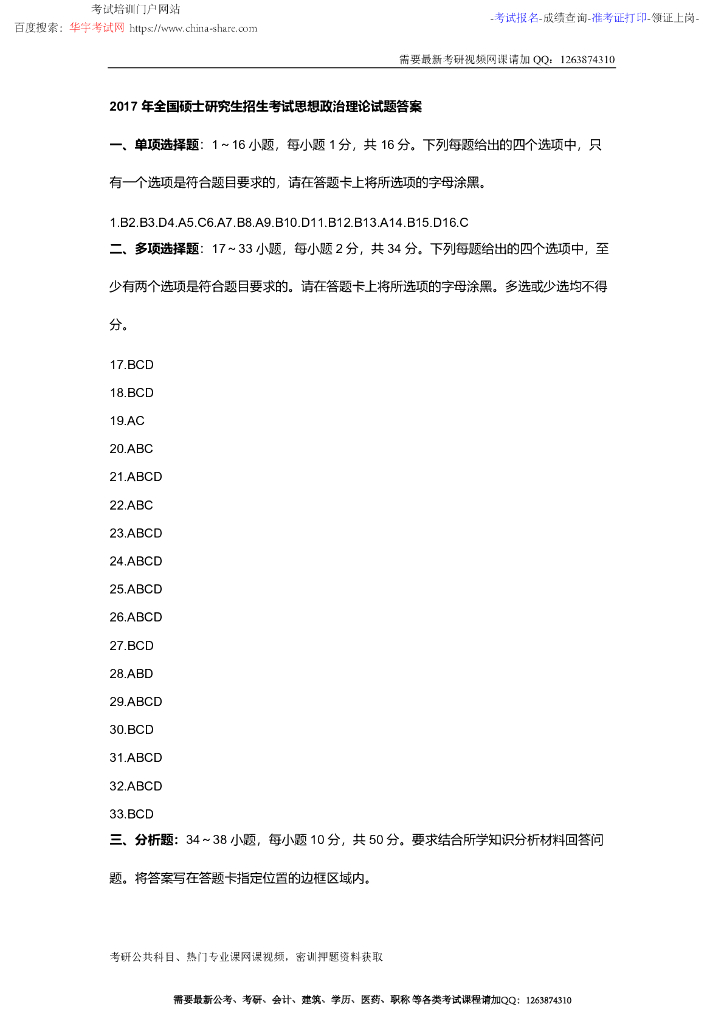 2017年考研政治试题答案.pdf