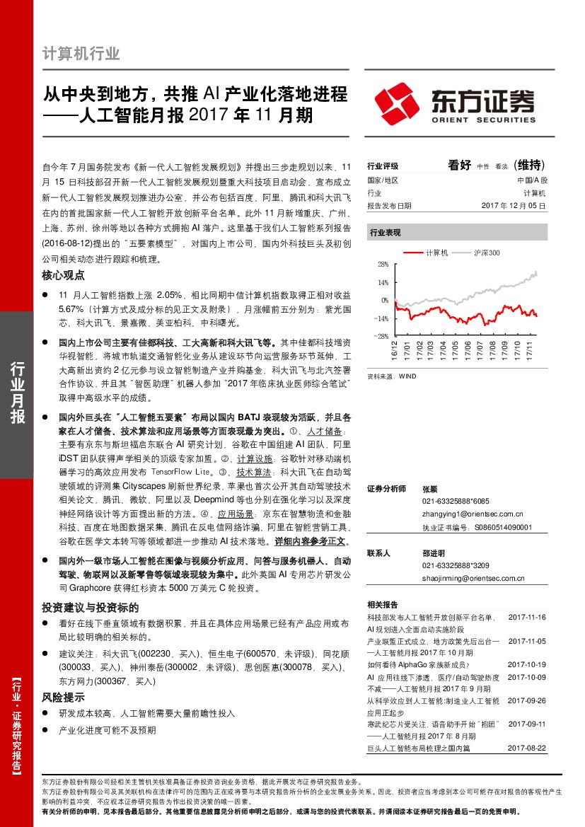 东方证券:人工智能月报2017年11月期:从中央到地方,共推AI产业化落地进程.pdf