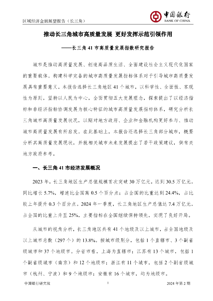 中国银行研究院:中国银行区域经济金融展望报告(长三角):推动长三角城市高质量发展,更好发挥示范引领作用.pdf