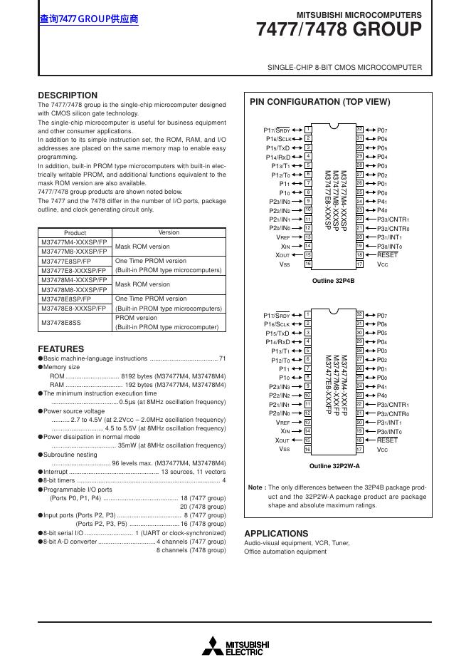 MITSUBISHI ELECTRIC 7477/7478 GROUP 数据手册.pdf