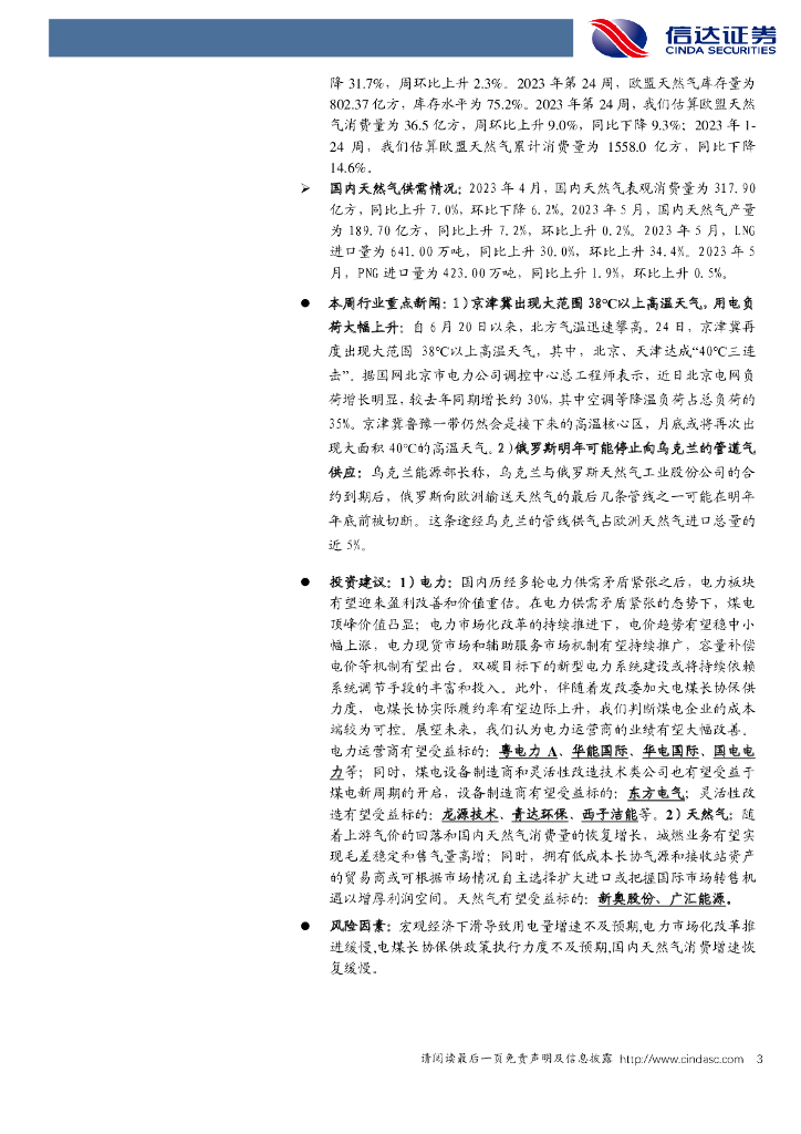 信达证券:公用事业—电力天然气周报:京津冀地区连续38℃以上高温,国内外气价回升.pdf