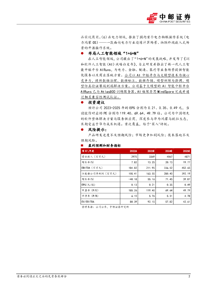 中邮证券:润和软件(300339)-华为鸿蒙核心合作伙伴,23年业绩大幅上升.pdf