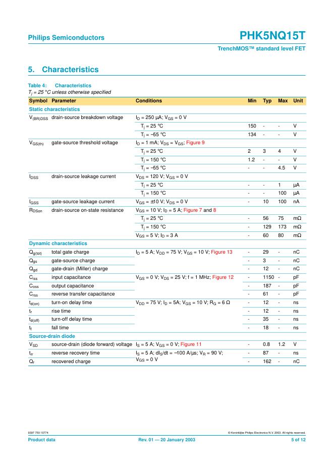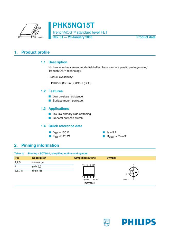 飞利浦 PHK5NQ15T TrenchMOS standard level FET 数据手册.pdf