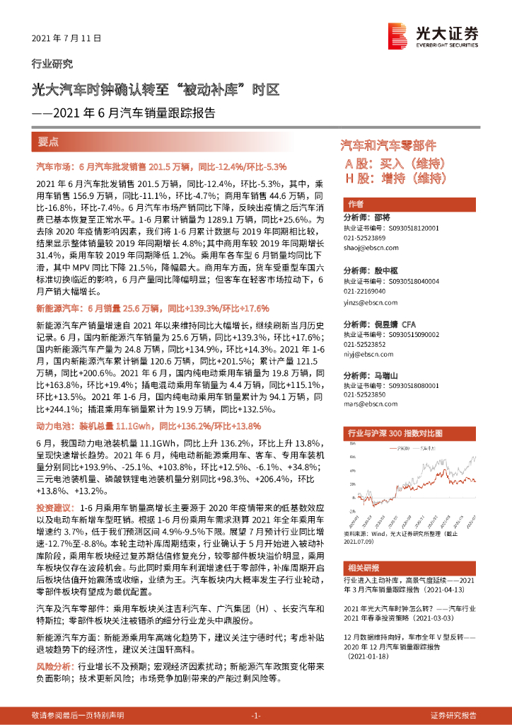 光大证券:2021年6月汽车销量跟踪报告:光大汽车时钟确认转至“被动补库”时区.pdf