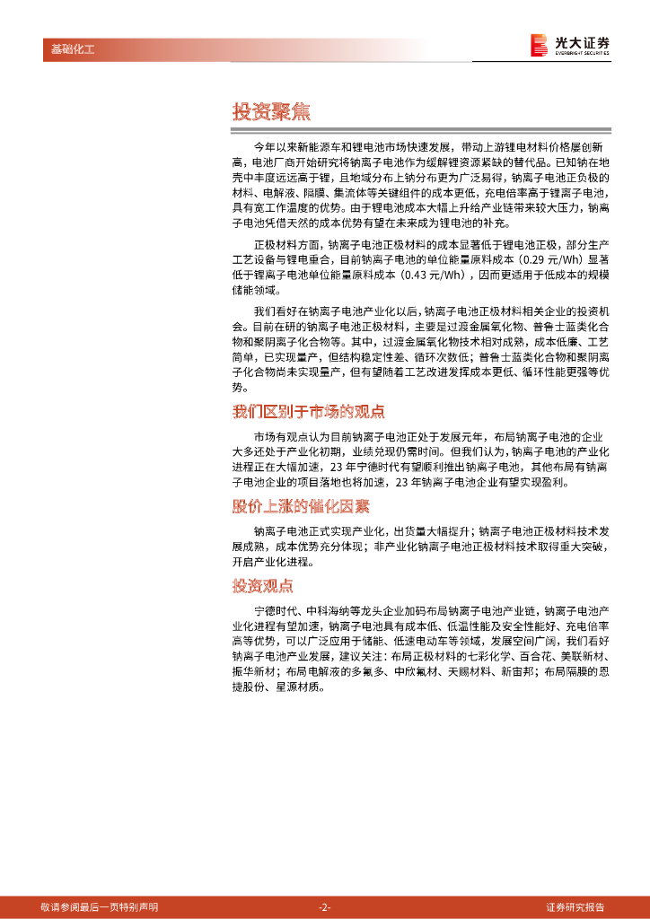 光大证券:中国化工新时代系列报告之钠离子电池材料:产业化指日可待,钠电未来可期.pdf