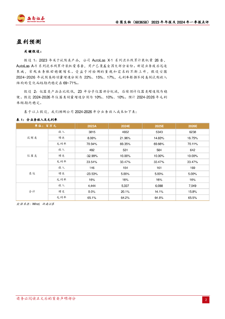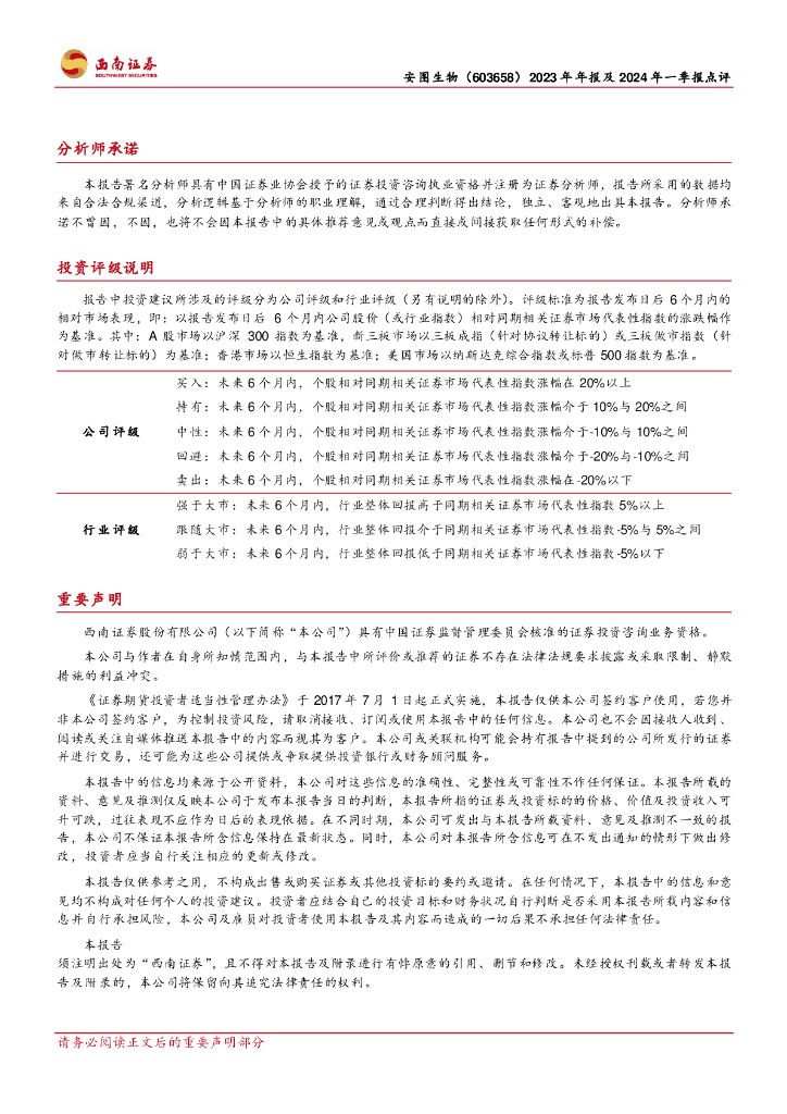 西南证券:安图生物(603658)-23年业绩符合预期,24Q1收入端短期承压.pdf
