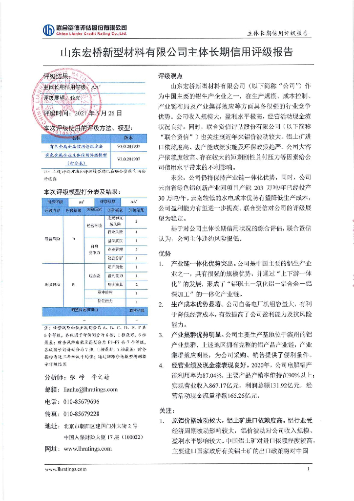 联合资信:山东宏桥新型材料有限公司主体信用评级报告及跟踪评级安排.pdf