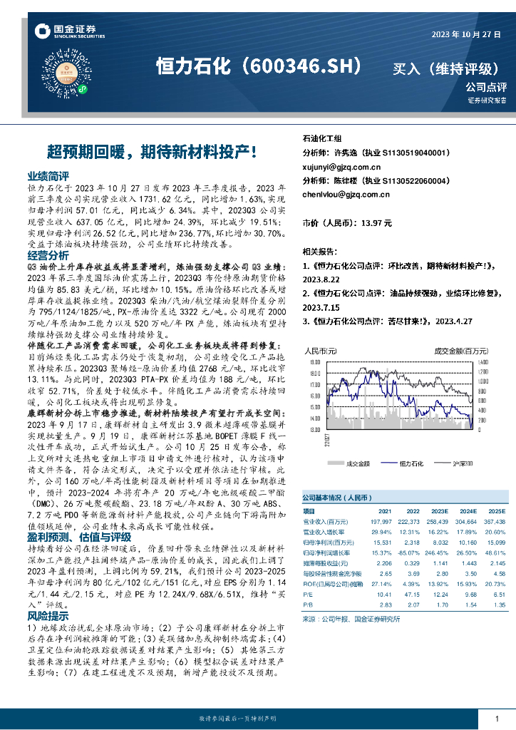 国金证券:恒力石化(600346)-超预期回暖,期待新材料投产!.pdf