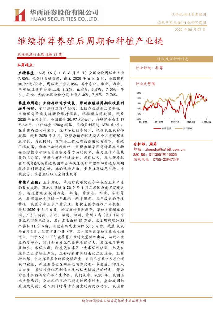 华西证券:农林牧渔行业周报第23期:继续推荐养殖后周期和种植产业链.pdf