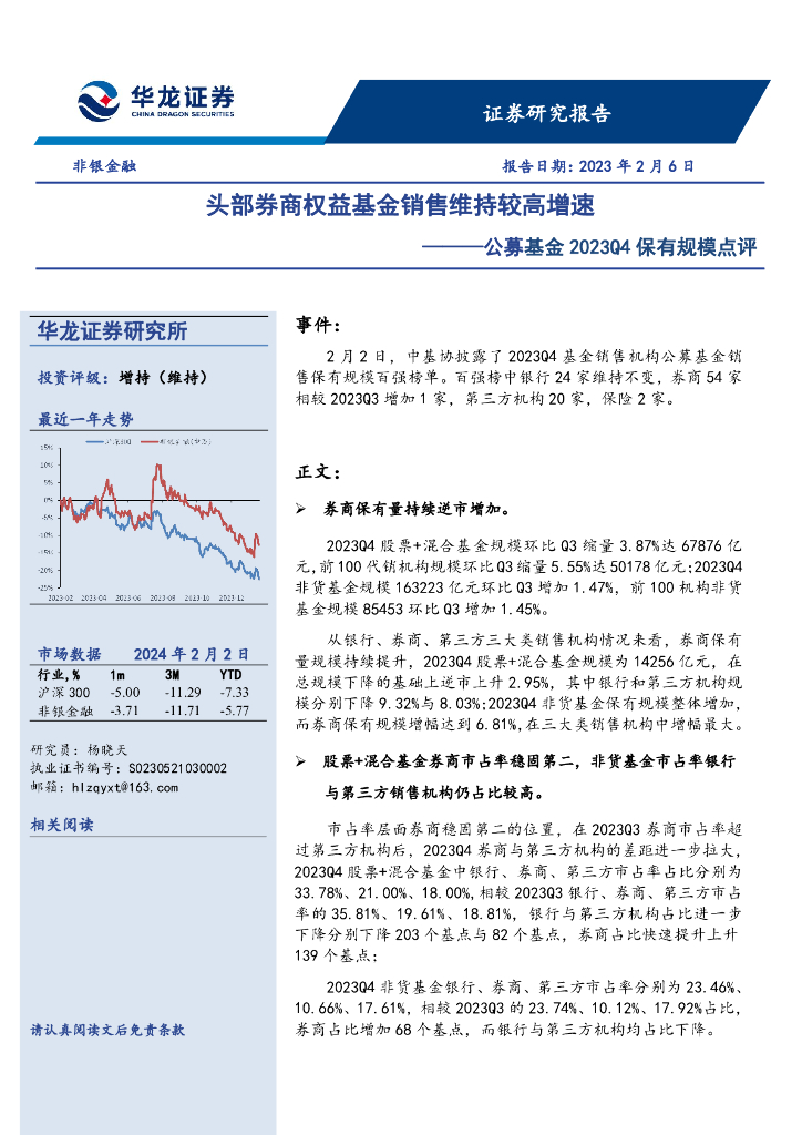 华龙证券:公募基金2023Q4保有规模点评:头部券商权益基金销售维持较高增速.pdf