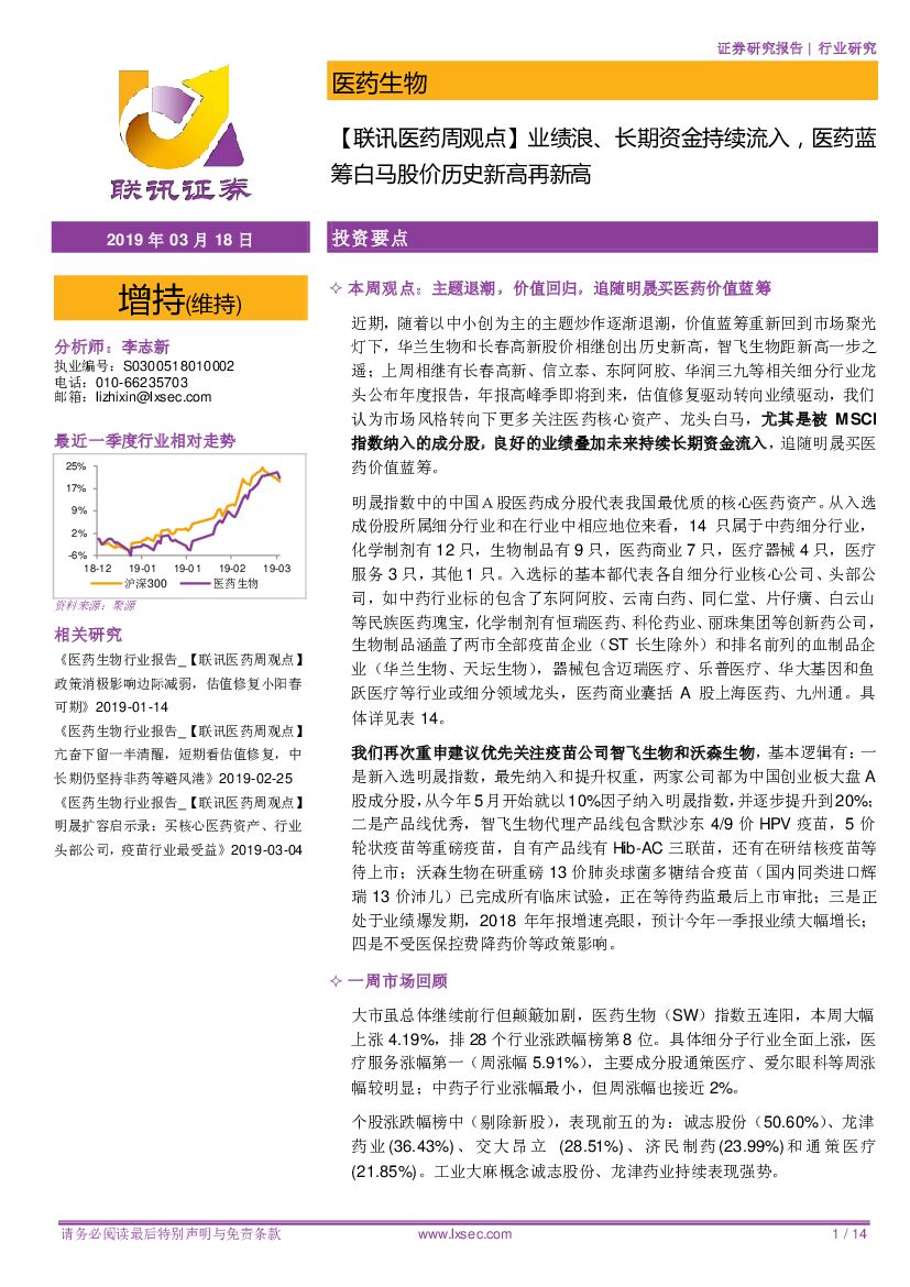联讯证券:【联讯医药周观点】业绩浪、长期资金持续流入,医药蓝筹白马股价历史新高再新高.pdf