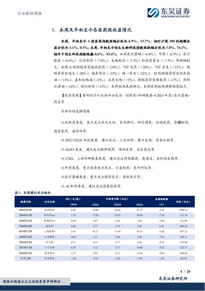 东吴证券:医药生物行业跟踪周报:药店现金流稳健、估值低,重点推荐益丰药房、大参林等.pdf