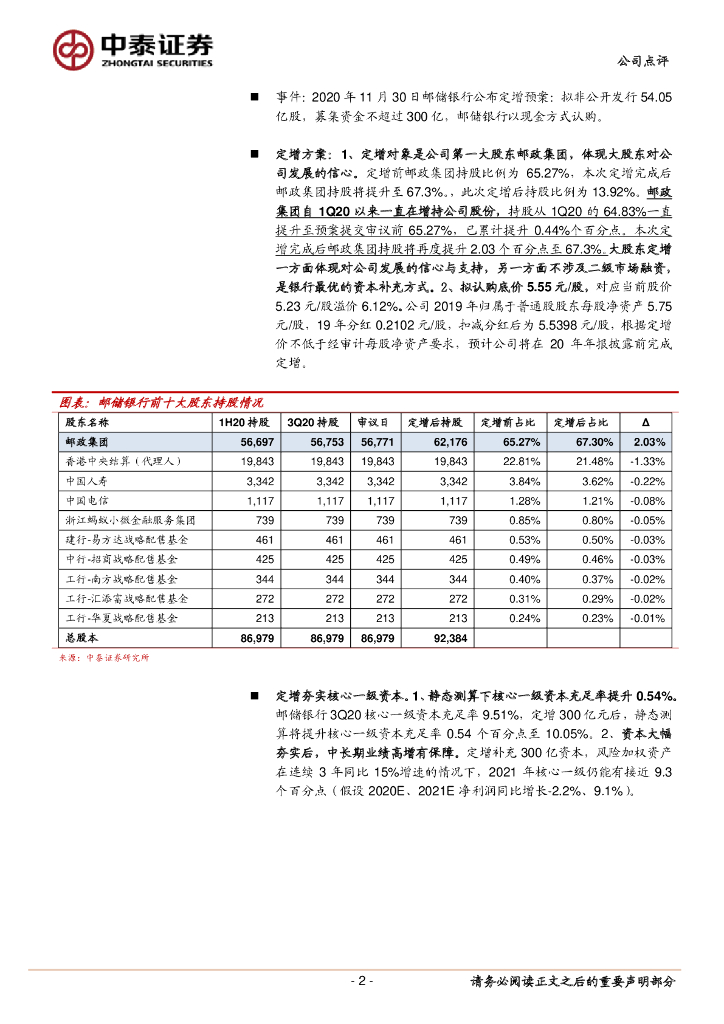 中泰证券:邮储银行定增预案:大股东溢价6%,核心一级资本率提升0.54%.pdf
