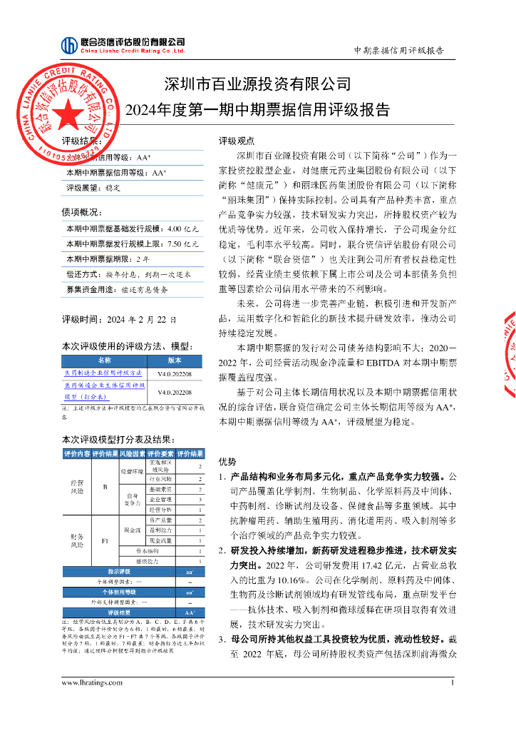 联合资信:深圳市百业源投资有限公司2024年度第一期中期票据信用评级报告.pdf